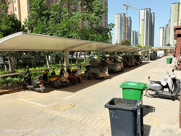 膜结构车棚以其的外观造型和构造彰显出城市的文化色、代表着时代的潮流。膜结构车棚可应用于社区、学校、商业、体育馆、工厂、政府机构等地方。