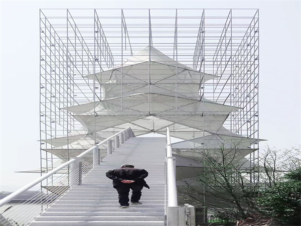 景观膜结构又叫张拉膜结构,是以建筑织物,膜材料为张拉主体,利用钢索与支柱在膜材中导入张力以达安定的形式。除了可实践具有创意且美观的造型外,也是能展现膜结构精神的构造形式。其曲面可以随着建筑师的设计需要任意变化,结合整体环境,建造出标志性的形象工程。不仅可应用于体育建筑、商场、展览中心、交通服务设施等大跨度建筑中,同时还可以应用于景观园林、公园广场、小区以及些标志性建筑中。