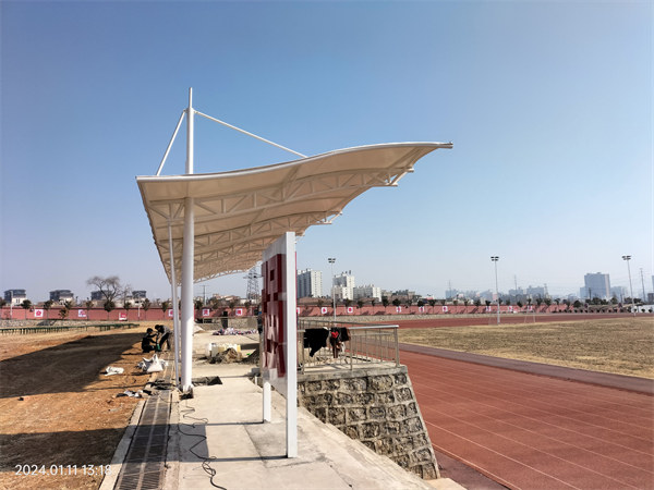 膜结构体育看台采光屋顶根据结构形式可分为骨架膜结构采光屋顶、充气膜结构采光屋顶和张拉膜结构采光屋顶三种类型。可满足篮球场、足球场、运动场等地的观赏需求。